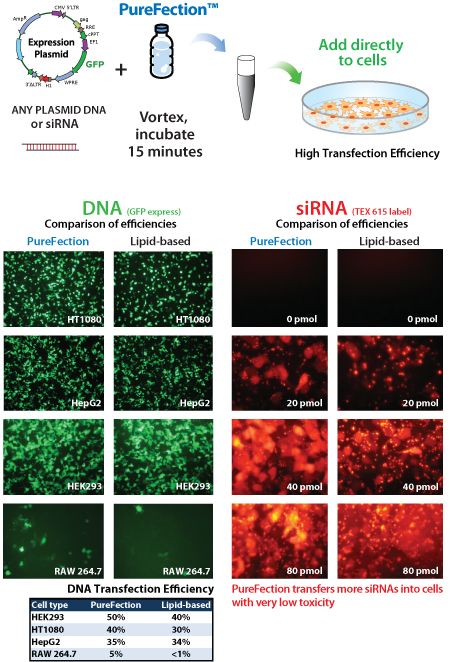PureFection is a powerful, broadly applicable transfection reagent for effective and reproducible transfections.
